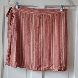 AEO AMERICAN EAGLE OUTFITTERS WRAP SKIRT LIGHTWEIGHT RUST CLAY STRIPE SIZE MEDIUM