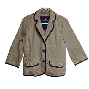 AEO American Eagle Blazer Medium Beige 3/4 Sleeve Button Front Casual Crop M
