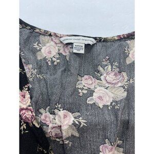 AEO American Eagle Outfitters Black Floral Romper with Ruffle Sleeves Sz Small S
