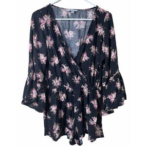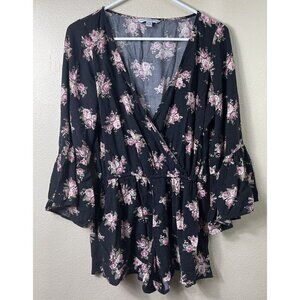 American Eagle Outfitters Black Floral Romper with Ruffle Sleeves Size Small
