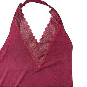 AEO American Eagle Outfitters Maroon V-Neck Lace Trim Halter bodysuit top Small