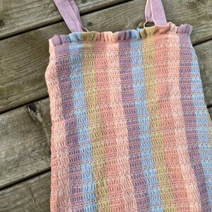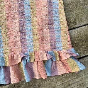 AEO American Eagle Pink Blue Ruffle Rainbow Striped Smocked Mini Dress Small