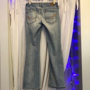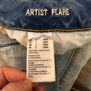 Fits like low-rise jeans. Holes and jeans are all patched and sewn over (no skin shows while wearing these)