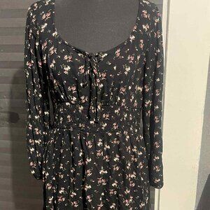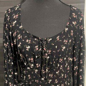 AEO BLACK FLOWERED LONG SLEEVE MINI DRESS SIZE MEDIUM