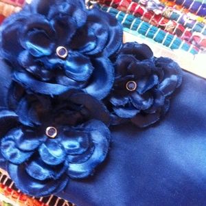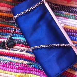 AEO Blue Flower Sequin Satin Clutch w Chain