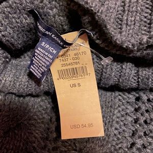 AEO Cold Shoulder Turtleneck Sweater. Size small. Soft knit sweater with relaxed, flattering fit. Cable knit detail & size slits with ribbed cuffs, neck & hem. Machine wash. Length covers your back pockets & hits around your mid zipper. 100% Acrylic.