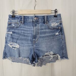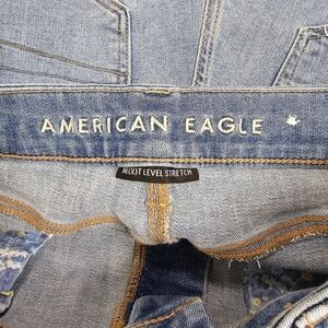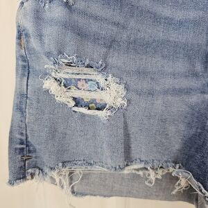 AEO Curvy Hi-Rise Shortie distressed with floral patching medium wash size 8