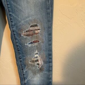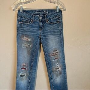 AEO Distressed Patched Colorful Factory Stitching Skinny Jeans