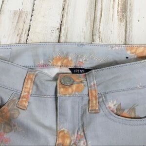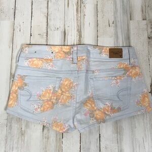American Eagle Outfitters AEO floral denim, cotton blend, shorts, size 2. In good used condition with no major flaws. All items are from a pet free, smoke free home and will ship same or next day.