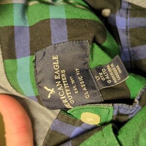 AEO Green/Navy Classic Fit Button Down Shirt Large TALL