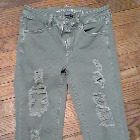 army green distressed stretch Hi-Rise jeggings size 4
