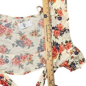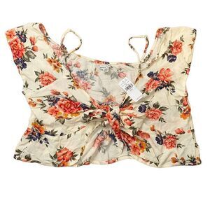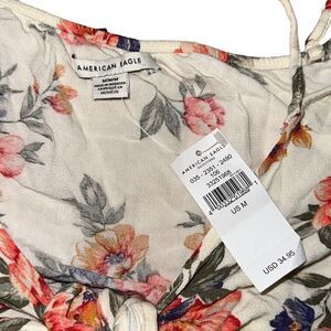 AEO NWT Size Med Floral on Cream Top Tie Front Adjustable Straps Flirtatious