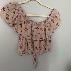 American Eagle Outfitters mauve floral ruffle top crop top size M excellent condition