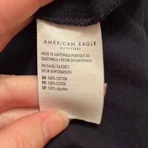 Excellent condition from a pet friendly home. Smoke free. Cracked design- adds to look. Color: navy blue and white Details: short sleeve t-shirt spell spell out Sega Genesis Tailgate XXL video game console gamer play AEO American Eagle Outfitters Material: 100% cotton Measurements are approximate: Pit to pit: 23” Length: 30.5” Instagram: @mckennathings