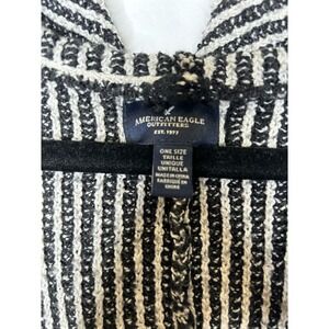 American Eagle Outfitters Blue, black and white, short sleeve knit sweater, open front shawl cardigan with pattern knit design.