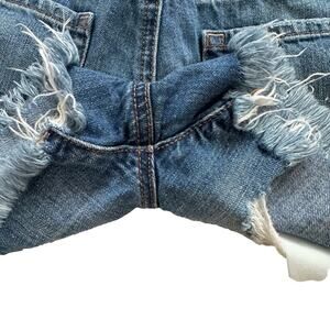 American Eagle Outfitters Distressed Floral Hummingbird Embroidered Hi Rise Festival Raw Hem Denim Jean Shorts
