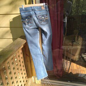 AEO Super Stretch Kickboot Jeans Back Buttoned Flap Sequined Pockets Sz 00