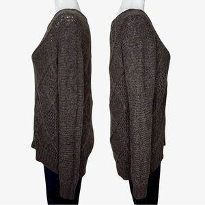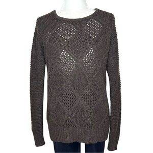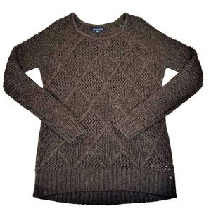 AEO Sweater Argyle Open Weave Diamond Knit Fuzzy Cabin Wool Blend Brown Small S