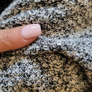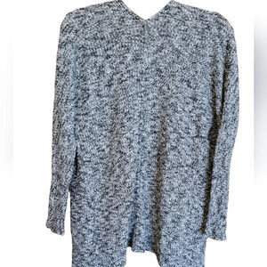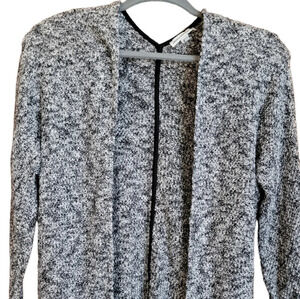 Textured knit open front cardi with small cut-out at back of the neck and seam running down center of the back.