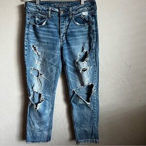 AEO Tomgirl Heavily Distressed Denim Jeans