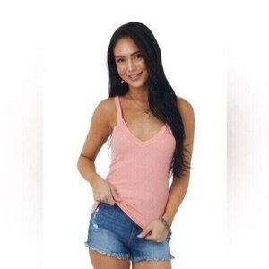 AEO Womens Ribbed Pink Crop Cami Tank Size XXS Beachy Coastal Girlcore New