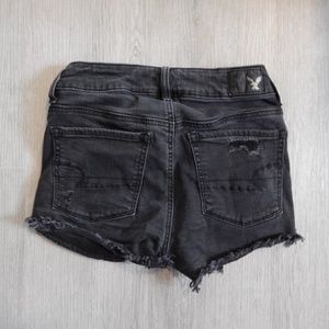 “Destroyed” high-rise shortie jean shorts from American Eagle Outfitters