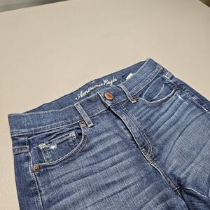 AEO stretch lightly distressed blue denim jean shorts women's size 4
