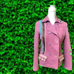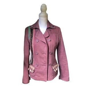 AEO AMERICAN EAGLE DUSTY ROSE VELVETEEN TASSEL EMBELLISHED OOAK PEACOAT SIZE S