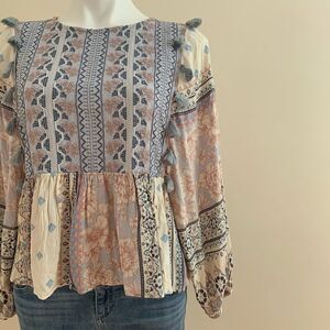 AEO Boho Embroidered Tassel Detail Swing Top