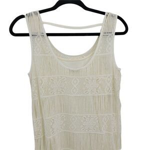 AEO Country Western Boho Lace Overlay Fringe Hem Slip Dress Vanilla Sz XS