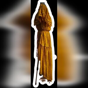 Chic high low dress with ruffle details. Mustard color adds vibrancy. Perfect for casual outings. Reminds me of the Lemonade dress on Beyoncé album! NWOT