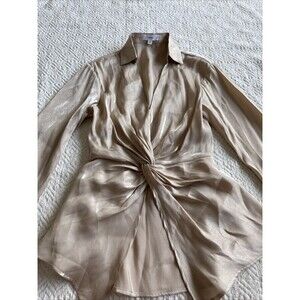 AEOM Women’s Gold Twist Top Blouse Long Sleeve Size XS
