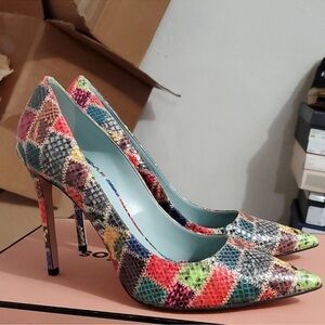AERA Women's Olivia Pump Snakeskin Mulit color patchwork Pumps heels 35EU 5 US