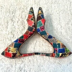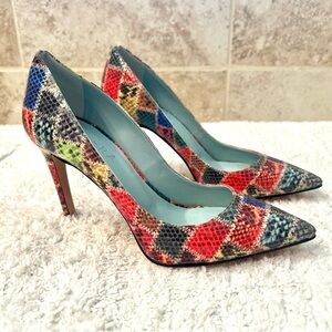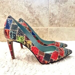AERA Women's Olivia Pump Snakeskin Mulit color patchwork Pumps Heels.