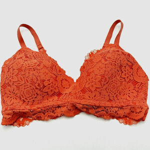 AERIE | 36 D Peach Orange Real Happy Wireless Plunge Floral Lined Lace Bra