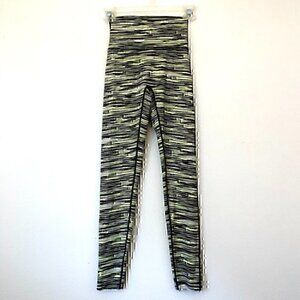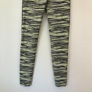 - neon lime green / gray / black horizontal striped leggings