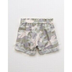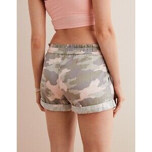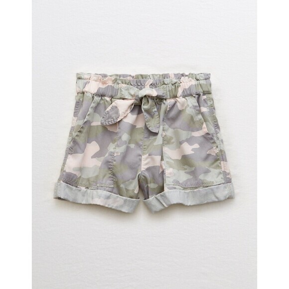 AERIE American Eagle Camp Shorts pink grey camo cuffed elastic pull on tie M