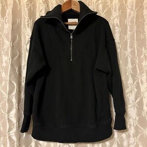 AERIE Black Down-To-Earth Quarter Zip Oversized Sweatshirt
