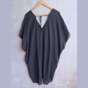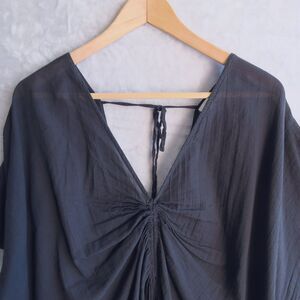 AERIE Black Gauze Tie Cape Size M Swim Coverup Cotton Beach Boho