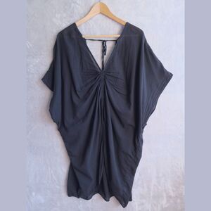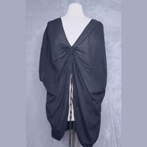☾ Features: Black swim cover-up that cinches in the front to allow for more or less exposure. Slightly sheer.