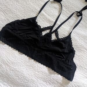 AERIE Black Lace Bralette Wireless Tie Straps M Dark Coquette lingerie