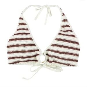 AERIE Crochet Stripe Bikini Swim Triangle Top Brown Beige Size Medium