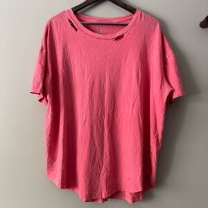 EUC AERIE DISTRESSED OVERSIZED TEE PINK SIZE LARGE
