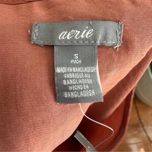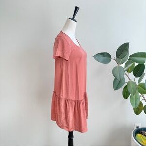 AERIE Dusty Rose Short Sleeve Drop Waist Ruffle Satin Dress Sz S