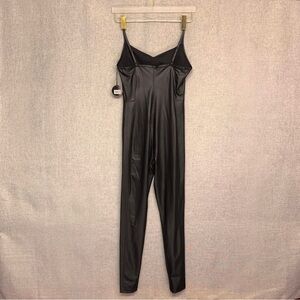 PRODUCT DESCRIPTION FROM ONLINE: Full length faux leather bodysuit with fully adjustable tank top style straps.