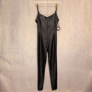 AERIE Faux Lather Tank Top Style Jumpsuit Bodysuit — LARGE — Black