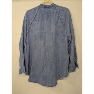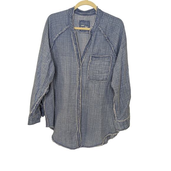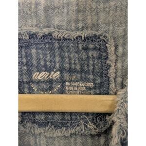 AERIE Gauzy Cover Up Shirt Pool to Party Oversize Button Up Blu Women Size Small