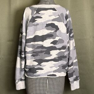 AERIE Gray Camo Cropped Crewneck Raw Hem Sweatshirt Size Medium