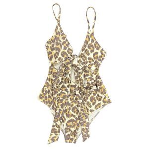 AERIE Leopard Wrap One Piece Swimsuit Full Coverage Womens XS Padded Wireless