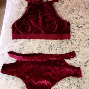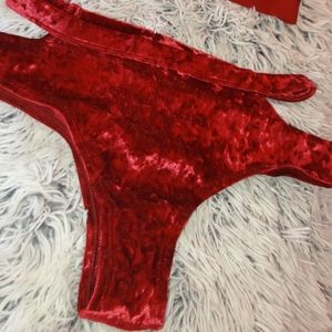 Sexy red velvet halter top w/bra floral embroidery & and matching high waisted cut out thong, never worn!!! Very elegant